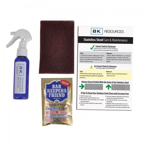 Stainless Steel Cleaner, maintenance mini kit, 3 ounce Bar Keepers Friend® Polish/Cleaner, Scotch Brite™ pad, stainless steel kit instructions