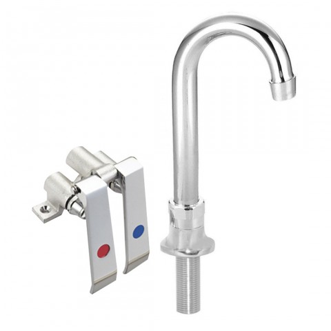 Dual Pedal Metering Knee Valve with Deck Mount Spout, 3" gooseneck spout, cast body, chrome plated pedals, (knee valve bracket required for hand sinks), lead free, cCSAus