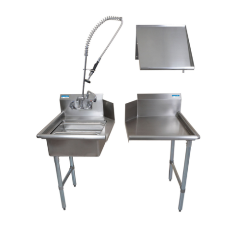 Dish Table Kit, 48"W, left-to-right operation, includes: (1) clean dishtable (BKCDT6-48-R-G-SS), (1) soiled dishtable (BKSDT6-48-L-SS), (1) slant rack shelf (BK-SSH-21), (1) pre-rinse basket (BK-PRB-5), (1) pre-rinse unit & basket drain (BKF-SMPR-WB-AF8), 16/304 stainless steel, NSF
