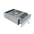Drawer Assembly, with lock, 20"W x 20"D x 5"H pan size, 200 lb. capacity, self-closing, stainless steel assembly with stainless steel pan, fits 24"D, 30"D & 36"D metal or wood work tables, universal mounting kit included to attach to metal tables, ADA compliant, NSF
