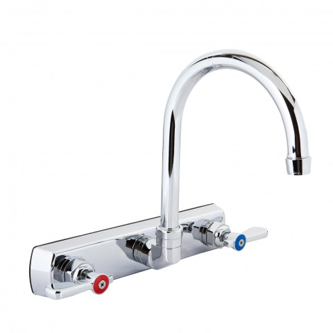 OptiFlow™ Heavy Duty Solid Body Faucet, splash-mounted, 8" OC, 5" gooseneck spout, double O-ring spout seal, 1/4 turn ceramic cartridges, integral check valve, high polished chrome finish, lead free, ADA Compliant