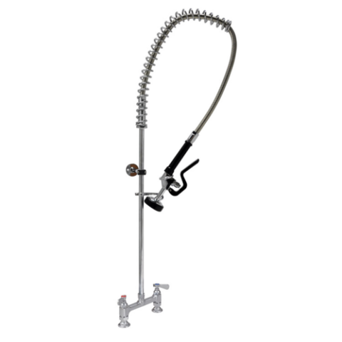 OptiFlow™ Pre-rinse Assembly, deck mount, 8" OC, includes 40" stainless braided hose (triple-ply at 300 psi), with low flow spray head rated less than 1 gallon/min., 12" wall bracket, integral check valves, 1/2" female inlets, 1/4 turn ceramic valves, lead free, NSF, cCSAus