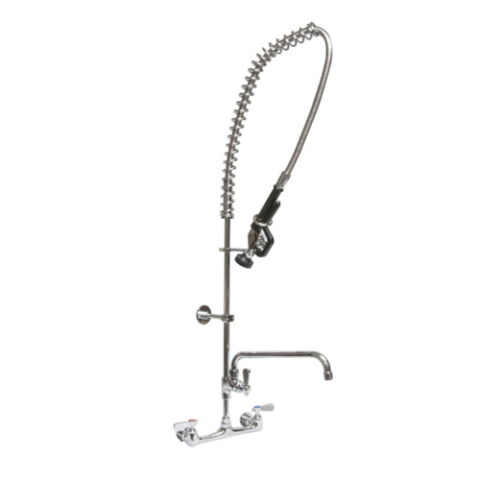 WorkForce™ Pre-Rinse Assembly, splash mount, with 18" add-on-faucet, 8" OC, includes 44" stainless steel braided hose (triple-ply at 300psi), 12" wall bracket, 1/2" female inlets, 1/4 turn ceramic valves, lead free, NSF, cCSAus