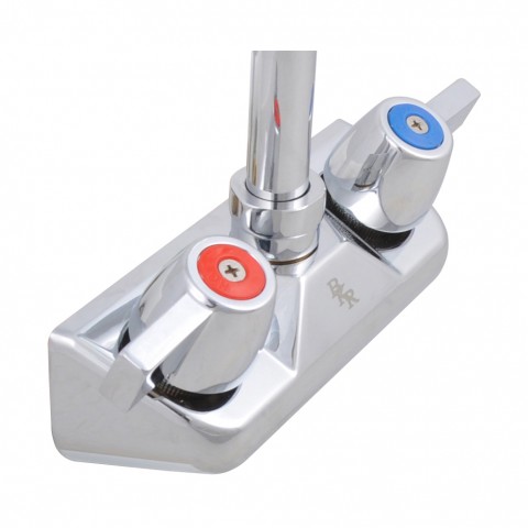 WorkForce™ Standard Duty Faucet Body, splash-mounted, 4" OC, no spout, double O-ring spout seal, 1/4 turn ceramic cartridges, polished nickel chrome finish, lead free, NSF, cCSAus (wrist blade handles not available)