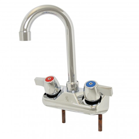 WorkForce™ Standard Duty Faucet, shallow splash-mounted, 4" OC, 8" gooseneck spout, double O-ring spout seal, 1/4 turn ceramic cartridges, polished nickel chrome finish, lead free (wrist blade handles not available)