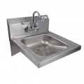 ADA Hand Sink, wall mount, 14" wide x 16" front-to-back x 5" deep bowl, 4" OC splash mount faucet with 3-1/2" gooseneck spout & wrist blade handles BKF-4DM-3G-G), 8" backsplash, marine edge, includes basket drain & wall bracket, 18/304 stainless steel, lead free, ADA Compliant