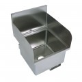 Hand Sink, wall mount, 16" wide x 16" front-to-back x 10" deep bowl, single deck mount faucet hole, side splashes on left & right, knee valve bracket (knee valve & spout sold separately), 11"H backsplash, includes mounting hardware, 16/304 stainless steel construction, NSF