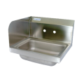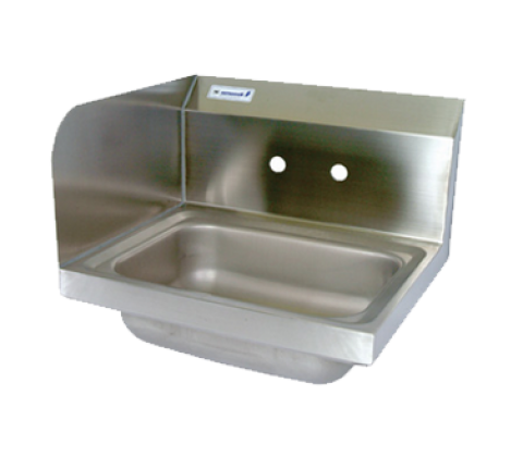Hand Sink, wall mount, 14" wide x 10" front-to-back x 5" deep bowl, 4" O.C splash mount faucet holes, marine edge, side splash on left, includes basket drain & wall mounting hardware, 304 stainless steel construction, NSF