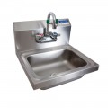 Hand Sink with Eye Wash Station, wall mount, 14" wide x 10" front-to-back x 5" deep bowl, 304 stainless steel, 4" OC splash mount faucet holes with (BKF-W-3G-G) faucet & eye wash faucet attachment, 1-7/8" drain opening, basket drain & mounting bracket included