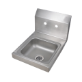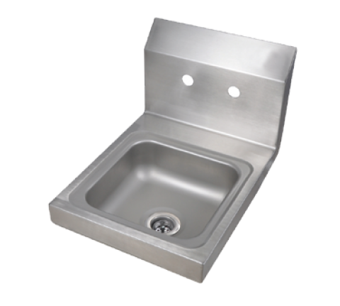 Space Saver Hand Sink, wall mount, 9" wide x 9" front-to-back x 5" deep bowl, 4" OC splash mount faucet holes, marine edge, 7-7/8"H backsplash, includes basket drain & wall mounting hardware, 304 stainless steel construction, NSF