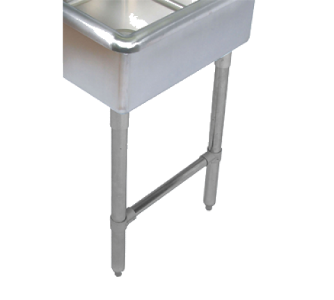 Stainless Steel Legs & Bracing Kit, for compartment sinks, includes: (4) 1-5/8" O.D. legs & (2) crossbraces, (4) end rail support sockets (Model# BKBS-1), (4) adjustable high-impact corrosion-resistant feet (Model# BK-SSPAF), 18/304 stainless steel construction (for NSF approved compartment sinks with sink bowls measuring 30" front-to-back x 14"deep)
