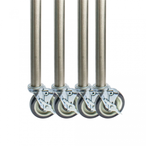 Legs with Caster, 33-1/4"H, 16GA T-304, 1-5/8" OD round, includes 5SBR-RA-PLY-TLB casters, stainless steel, kit of 4