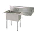 Sink, one compartment, 50-1/2"W x 29-13/16"D x 43-3/4"H overall size, 24" wide x 24" front-to-back x 14" deep compartment, 24" drainboard on right, 9"H backsplash, 8" OC splash mount faucet holes, 1-1/2" rolled edges on front & sides, includes basket drain (BKDR-4), 18/304 stainless steel construction, galvanized steel legs, adjustable high impact corrosion resistant feet, NSF