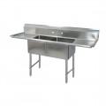 Sink, two compartment, 68"W x 25-13/16"D x 43-3/4"H overall size, 16" wide x 20" front-to-back x 12" deep compartments, (2) left & right 18" drainboards, 9"H backsplash, 8" OC splash mount faucet holes, 1-1/2" rolled edges front & sides, includes basket drains (BKDR-4), 18/304 stainless steel construction, stainless steel legs & side crossbracing, adjustable stainless steel over plastic bullet feet, NSF