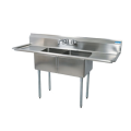 Sink, two compartment, 76"W x 25-13/16"D x 43-3/4"H overall size, 20” wide x 20" front-to-back x 12" deep compartments, (2) left & right 18" drainboards, 9"H backsplash, 8" OC splash mount faucet holes, 1-1/2" rolled edges on front & sides, includes basket drains (BKDR-4), 18/304 stainless steel construction, galvanized steel legs, adjustable high impact corrosion resistant feet, NSF