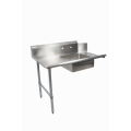 Heavy Duty Soiled Dishtables, straight design, 72"W x 30-7/8"D x 46-1/4"H, left-to-right operation, 16/304 stainless steel top, 10"H backsplash, 20" x 20" x 8" deep pre-rinse sink, 8" OC splash mount faucet holes, raised rolled edges on front & side, includes 3-1/2" basket drain (BKDR-4), stainless steel legs & side bracing, adjustable plastic bullet feet, NSF