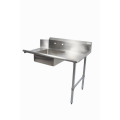 Heavy Duty Soiled Dishtables, straight design, 72"W x 30-7/8"D x 46-1/4"H, right-to-left operation, 16/304 stainless steel top, 10"H backsplash, 20" x 20" x 8" deep pre-rinse sink, 8" OC splash mount faucet holes, raised rolled edges on front & side, includes 3-1/2" basket drain (BKDR-4), stainless steel legs & side bracing, adjustable plastic bullet feet, NSF