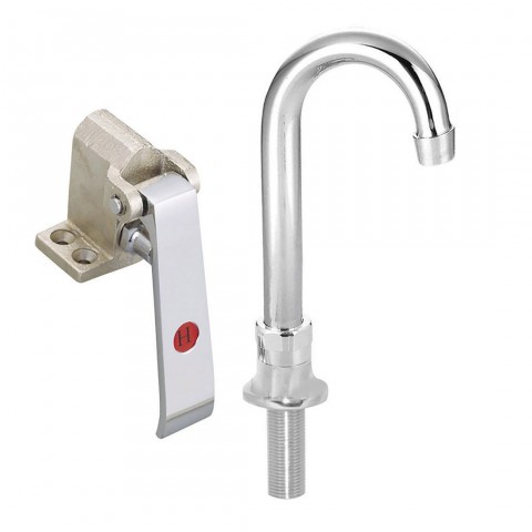 Single Pedal Metering Knee Valve with Deck Mount Spout, 3" gooseneck spout, cast body, chrome plated pedals, (knee valve bracket required for hand sinks)
