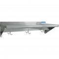 Economy Overshelf, wall mount with pot rack, 24"W x 12"D, 18/430 stainless steel, 1-1/2"H rear up-turn, (2) 8" angle supports, (2) stainless steel double prong hooks (BKSSDPH), NSF