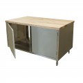 Dual Access Chef Table, cabinet base with hinged doors on both sides, 60"W x 30"D x 34-3/4"H overall size, 1-3/4" thick hard maple flat top with penetrating oil finish, 18/304 stainless steel body, (1) set of hinged doors on each side, 6” stainless steel legs with 1" height adjustment, stainless steel feet, NSF (3-10 day lead time)