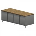 Dual Access Chef Table, cabinet base with hinged doors & locks on both sides, 96"W x 30"D x 34-3/4"H overall size, 1-3/4" thick hard maple flat top with penetrating oil finish, 18/304 stainless steel body, center mullion (2) sets of hinged doors with locks on each side, 6” stainless steel legs with 1" height adjustment, stainless steel feet, NSF (3-10 day lead time)