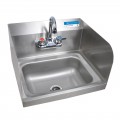 Premier Case Pack with Free Shipping of (2) BKHS-W-1410-SS-P-G Hand Sinks, wall mount, 14" wide x 10" front-to-back x 5" deep bowl, 4" O.C splash mount faucet (BKF-W-3G-G, lead free), marine edge, side splashes on left & right, includes basket drain & wall mounting hardware, 304 stainless steel construction, NSF