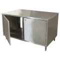 Dual Access Chef Table, cabinet base with hinged doors & locks on both sides, 18"W x 24"D x 34-3/4"H overall size, 14/304 stainless steel top, 18/304 stainless steel body, (1) set of doors with locks on each side, 6” stainless steel legs with 1" height adjustment, stainless steel feet, NSF (3-10 day lead time)