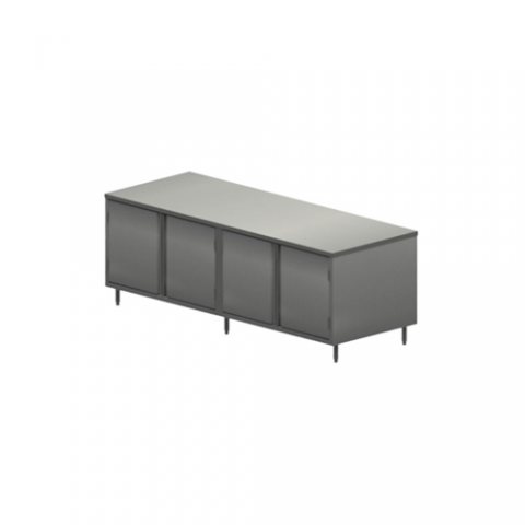 Dual Access Chef Table, cabinet base with hinged doors & locks on both sides, 120" W x 30" D x 34-3/4" H, 14GA stainless steel top, 18GA stainless steel body, 6" stainless steel adjustable legs, NSF (5-7 day lead time)