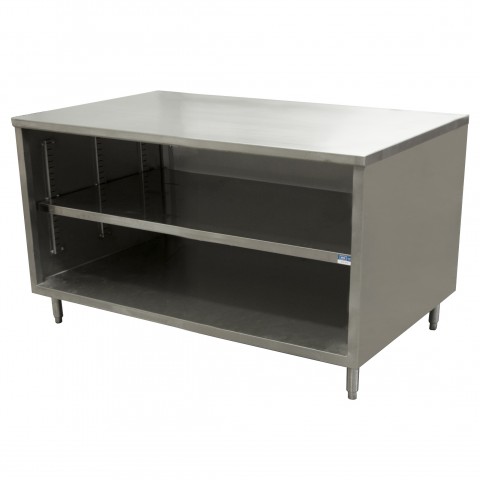 Chef Table, cabinet base with open front, 60"W x 30"D x 34-3/4"H overall size, 14/304 stainless steel top, 18/304 stainless steel body, 6” stainless steel legs with 1" height adjustment, stainless steel feet, NSF