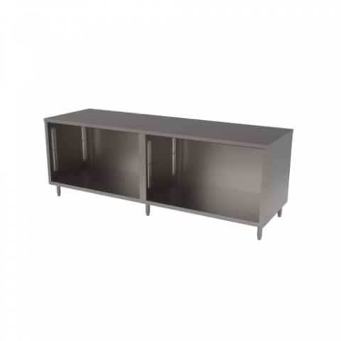 Chef Table, 84"W x 30"D, 14 ga stainless steel top, 18 ga. stainless steel body, 6" stainless steel adjustable legs, shown with optional shelf, NSF, 3-10 day lead time