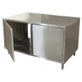 Dual Access Chef Table, cabinet base with hinged doors on both sides, 60"W x 36"D x 34-3/4"H overall size, 14/304 stainless steel top, 18/304 stainless steel body, (1) set of doors on each side, 6” stainless steel legs with 1" height adjustment, stainless steel feet, NSF (3-10 day lead time)