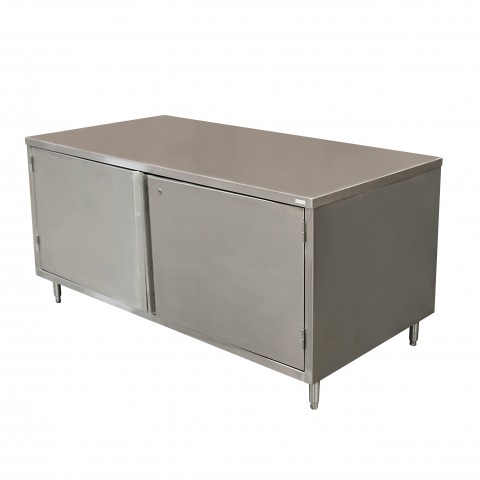Chef Table, cabinet base with hinged doors & lock, 72"W x 36"D x 34-3/4"H overall size, 14/304 stainless steel top, 18/304 stainless steel body, (1) set of hinged doors with lock, 6" stainless steel legs with 1" height adjustment, stainless steel feet, NSF (3-10 day lead time)