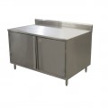 Work Table, cabinet base with hinged doors & lock, 60"W x 24"D x 39-3/4"H overall size, 14/304 stainless steel top with 5" back riser, 18/304 stainless steel body, (1) set of hinged doors with lock, 6" stainless steel adjustable legs, NSF (3-10 day lead time)
