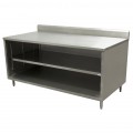 Chef Table, cabinet base with open front, 72"W x 24"D x 39-3/4"H overall size, 14/304 stainless steel top with 5" back riser, 18/304 stainless steel body, 6” stainless steel legs with 1" height adjustment, stainless steel feet, NSF