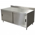 Chef Table, cabinet base with sliding doors, 72"W x 30"D x 39-3/4"H overall size, 14/304 stainless steel top with 5" back riser, 18/304 stainless steel body, (1) set of doors, 6” stainless steel legs with 1" height adjustment, stainless steel feet, NSF (3-10 day lead time)