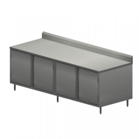 Chef Table, cabinet base with hinged doors, 96"W x 30"D x 39-3/4"H overall size, 14/304 stainless steel top with 5" back riser, 18/304 stainless steel body, center mullion, (2) sets of doors, 6” stainless steel legs with 1" height adjustment, stainless steel feet, NSF (3-10 day lead time)