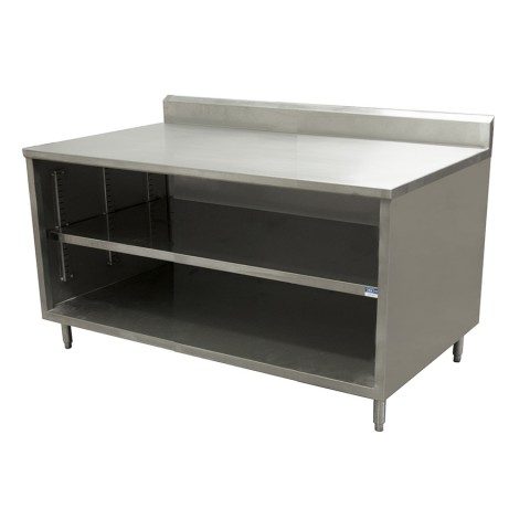 Chef Table, cabinet base with open front, 60"W x 36"D x 39-3/4"H overall size, 14/304 stainless steel top with 5" back riser, 18/304 stainless steel body, 6” stainless steel legs with 1" height adjustment, stainless steel feet, NSF