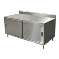 Chef Table, cabinet base with sliding doors, 60"W x 36"D x 39-3/4"H overall size, 14/304 stainless steel top with 5" back riser, 18/304 stainless steel body, (1) set of doors, 6” stainless steel legs with 1" height adjustment, stainless steel feet, NSF (3-10 day lead time)