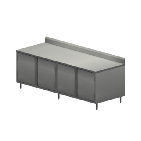 Chef Table, cabinet base with hinged doors, 96"W x 36"D x 39-3/4"H overall size, 14/304 stainless steel top with 5" back riser, 18/304 stainless steel body, center mullion, (2) sets of doors, 6” stainless steel legs with 1" height adjustment, stainless steel feet, NSF (3-10 day lead time)