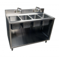 Sink Cabinet, (4) compartment, overall dimensions 48"W x 24"D x 39-3/4"H, working height 34-3/4" height, 18/304 stainless steel, deep drawn contruction, marine edge, accepts (2) 4" OC faucets, includes (2) BKD-10G-G faucets 10" gooseneck faucets, (4) BKDR-4 drains, NSF