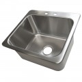 Deep Drawn Drop-In Sink, one compartment, 23"W x 21"D x 12"H overall size, (1) 20" wide x 16" front-to-back x 12" deep compartment, 4" OC deck mount faucet holes, includes basket drain (BKDR-4), 18/304 stainless steel construction, NSF