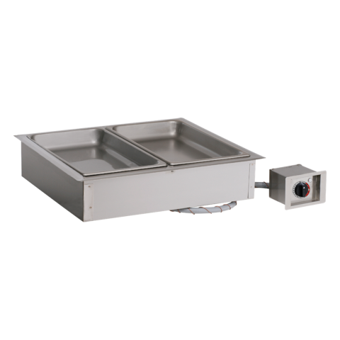Hot Food Well Unit, Drop-In, Electric Halo Heat®, (2) waterless compartments, (2) GN 1/1 or (4) GN 1/2 or (6) GN 1/3 pan capacity (pans NOT included), holds up to 4" deep pans, includes (1) large pan divider bar and (4) half/third size divider bars, NSF, UL, IPX3 (contact factory for price)