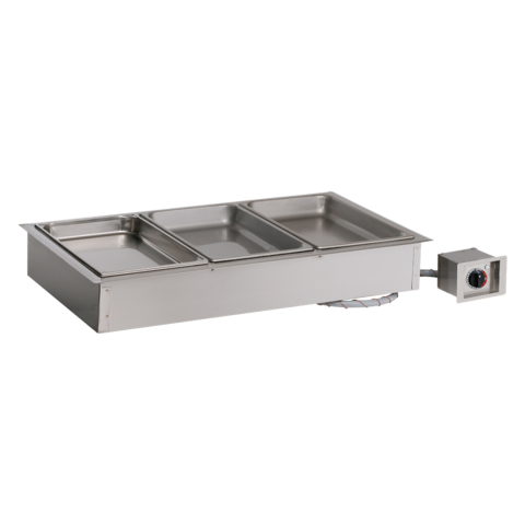 Hot Food Well Unit, Drop-In, Electric Halo Heat®, (3) waterless compartments, (3) GN 1/1 or (6) GN 1/2 or (9) GN 1/3 pan capacity (pans NOT included), holds up to 4" deep pans, includes (2) large pan divider bars and (6) half/third size divider bars, NSF, UL, IPX3 (contact factory for price)