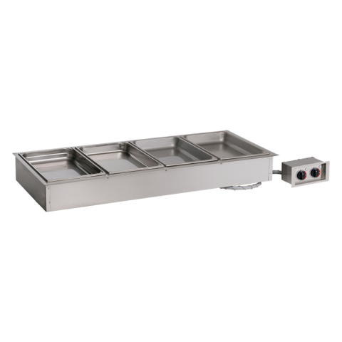 Hot Food Well Unit, Drop-In, Electric Halo Heat®, (4) waterless compartments, (4) GN 1/1 or (8) GN 1/2 or (12) GN 1/3 pan capacity (pans NOT included), holds up to 4" deep pans, includes (3) large pan divider bars and (8) half/third size divider bars, NSF, UL, IPX3 (contact factory for price)