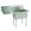 Economy Sink, one compartment, 38-1/2"W x 23-13/16"D x 43-3/4"H overall size, 18” wide x 18” front-to-back x 12” deep compartments, 18" left drainboard, 9”H backsplash, 1-1/2” rounded front & side edges, 8” OC splash mount faucet holes, drain included, 18 gauge stainless steel deck & bowls, galvanized legs, adjustable high impact corrosion resistant feet, NSF (NET)