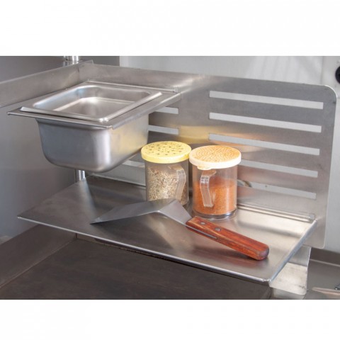 GrillCook Pro Upright Shelf Stand, 18" Shelf, & 1/6 Pan Holder, large, 18" wide, universal, stainless steel, fits on grill/griddle splashes or equipment stand risers
