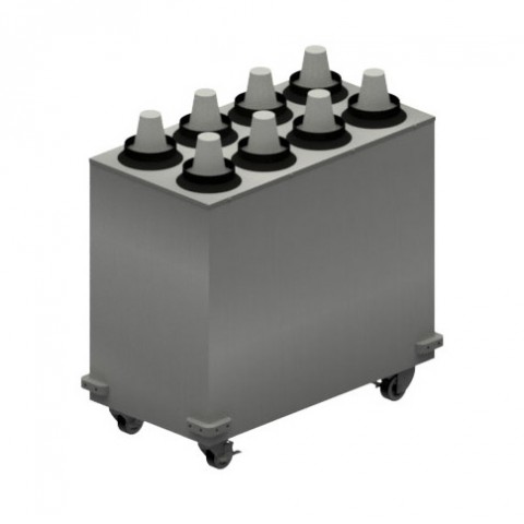 Mobile Cup Dispenser, 17-1/2"W x 33"D x 31"H, (8) total dispensers (2 rows of 4), accepts 8 oz to 46 oz size cups, 18/304 stainless steel cabinet, bumper guards, (4) swivel casters with locks, NSF
