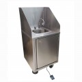 Handwash Sink, mobile, cold water only, 12" x 10" x 5-3/4" bowl, 5" gooseneck faucet, pump-saving foot switch, 14 gauge stainless steel top with 16" splash, 5 gallon fresh water tank, 7 gallon waste water tank, soap & towel dispenser, 18 gauge stainless steel body, (4) 5" swivel casters,