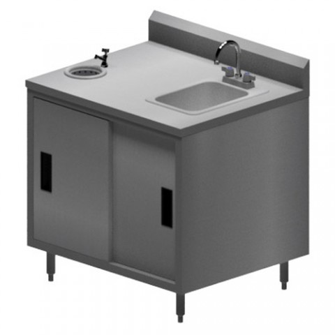 Work Table/Ice Cream Cabinet, with sliding doors, & 5" riser top, 36"W x 30"D, 14/304 stainless steel top & 18/304 stainless steel body, includes: BK-DIS-1014-10-P-G drop-in sink with faucet installed, BK-DWBA dipper well with BKF-DWE-G faucet installed, (2) sliding doors, 6" stainless steel adjustable legs, NSF (3-10 day lead time)