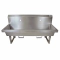 Two Station Handwash Sink, wall mounted, (2) single hole splash mount faucet holes, 48"W x 19-7/8" front-to-back x 8" deep bowl, knee valve bracket, 14/304 stainless steel sink, basket drain, 18 gauge stainless steel legs & supports, NSF (3-5 day lead time)